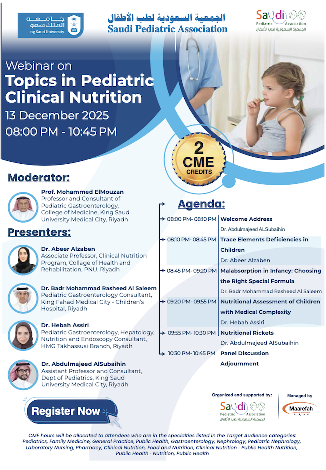Pediatric Clinical Nutrition - Webinar - Sat. 13 Dec. 2025